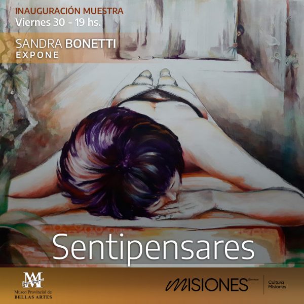 Este viernes a las 19 hs Sandra Bonetti inaugura una muestra de óleos, técnicas mixtas y acrílicos en el museo de Sarmiento casi Colón de Posadas. “Sentipensares” es el encuentro consciente entre corazón, expresión y razón. “Refiere al abordaje de la realidad, a partir de la reflexión, el impacto emocional y la expresión para converger…