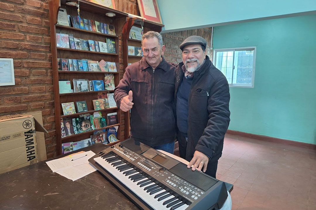La entrega del instrumento fue una grata sorpresa para Mariano. “Recibí el llamado de Joselo, invitándome a Posadas para firmar unos papeles y así poder gestionar un instrumento. Y al llegar, me encuentro con esta hermosa sorpresa. Tengo una emoción inmensa”, añadió, sopesando las virtudes del nuevo teclado.