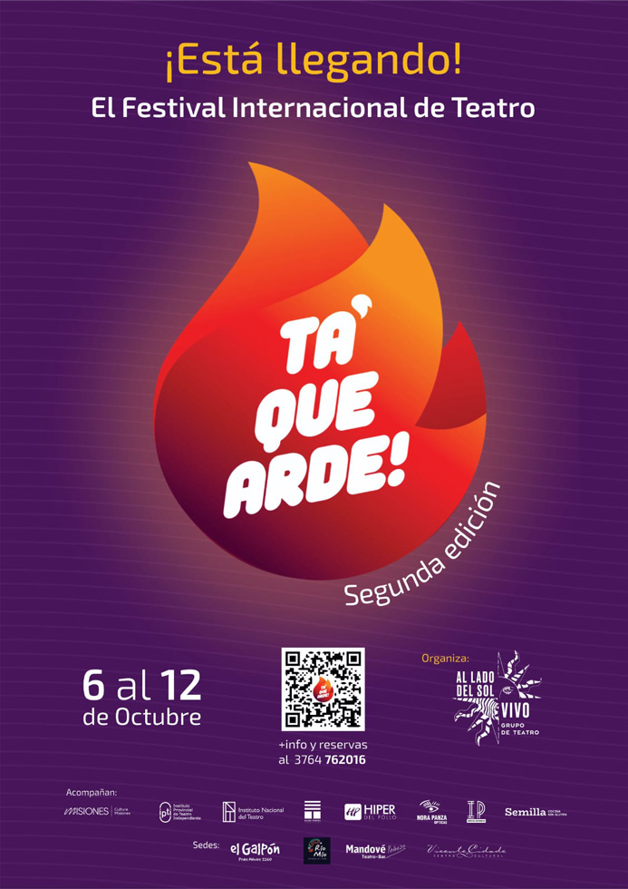 Del lunes 6 al domingo 12 de octubre, Posadas será sede del Festival Internacional de Teatro “Ta Que Arde”, segunda edición. Ocho funciones con elencos visitantes, además de capacitaciones, talleres, conversatorios y un taller de dramaturgia.