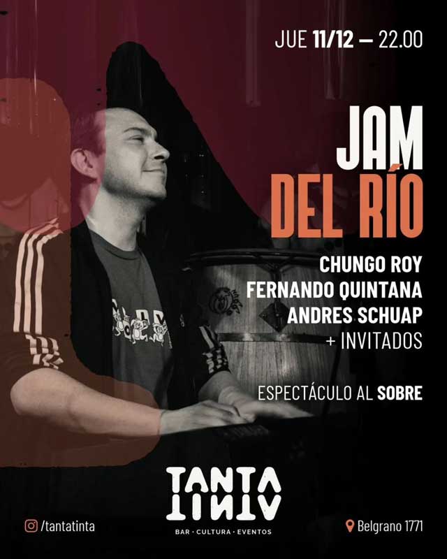 En una noche imperdible, La JAM del Río recibe al Chungo Roy, pianista posadeño que trabajó con músicos de toda Latinoamérica, moviéndose con soltura entre la música clásica, la música popular y el jazz. Para abrir la noche, se presenta en trío junto a Fernando Quintana en guitarra y Andrés Schuap en batería e invitados. Acercate con tu instrumento.