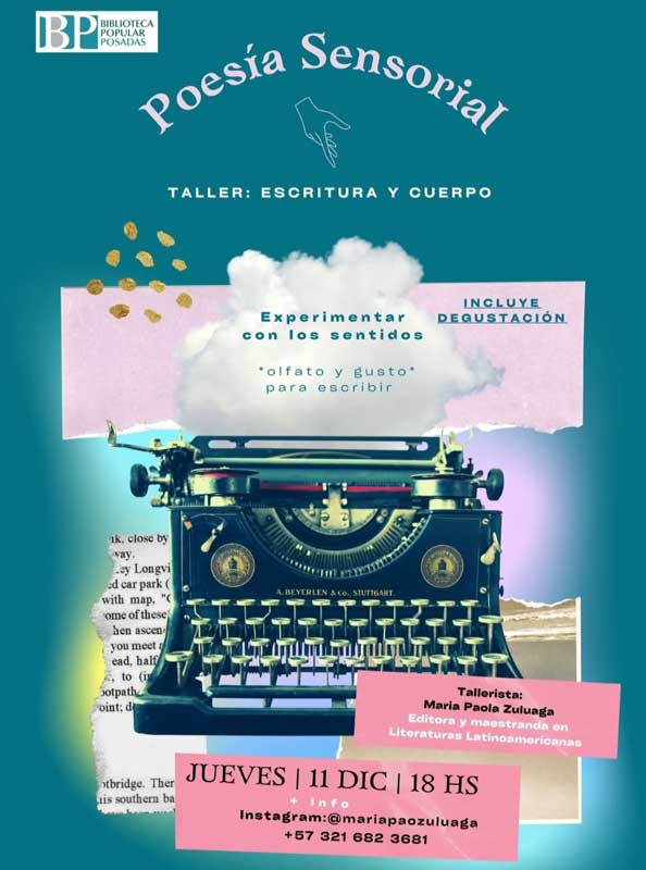 ¿Querés escribir desde la corporalidad? Este es un taller en el que gustos y aromas son experiencias de creación. Facilitadora: Maria Paola Zuluaga, escritora y editora, maestranda en Literaturas de América Latina – UNSAM. A través de experiencias sensoriales, lecturas y escrituras, se busca desbloquear la sensibilidad poética.