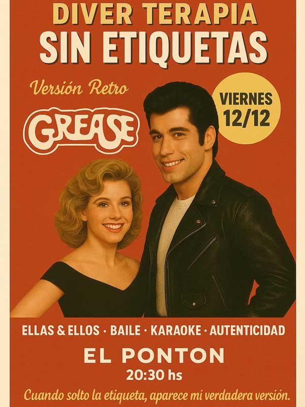 Y si por una noche te animás a ser vos? Volvemos al pasado en modo GREASE. Brillo, energía, actitud y mucha, muchísima diversión. Ellas & Ellos – todos invitados. Karaoke que te desata. Porque cuando soltás la etiqueta… aparecés vos.