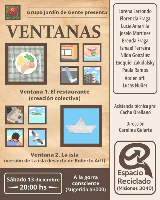El grupo jardín de Gente presenta Ventanas en Espacio Reciclado