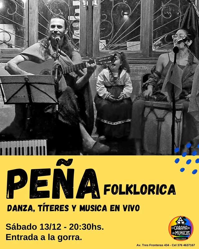 Para celebrar la cultura y la música en vivo, la Cabaña de los Muñecos de Iguazú organiza una peña folklórica, pensada para disfrutar en comunidad con danza, música en vivo y títeres.