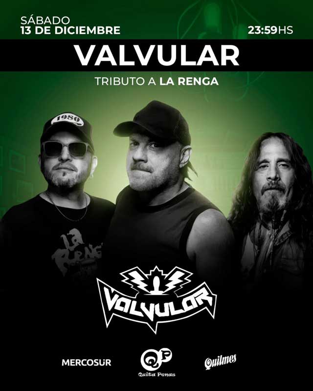 La banda Valvular se presenta en Quita Penas con un tributo a La Renga. El banquete estará servido a la medianoche para disfrutar del rock!