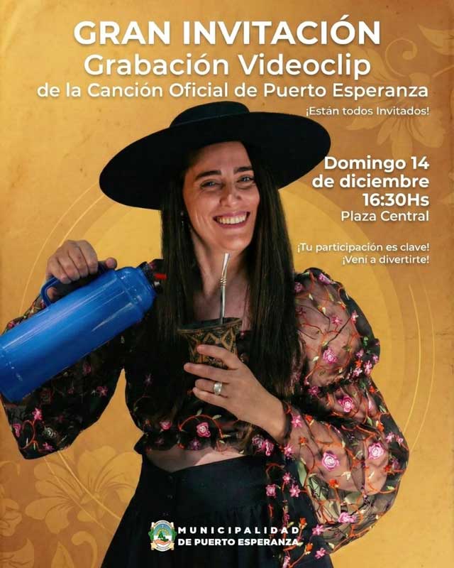 Este domingo, con la participación de Pamela Ayala y músicos invitados, la Municipalidad de Puerto Esperanza realizará la grabación del videoclip de la canción oficial de la localidad. Es una invitación a ser parte de la historia de la ciudad