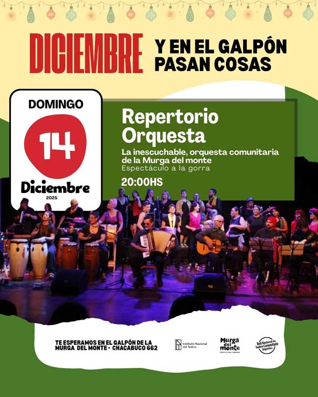 A Para despedir el año la Inescuchable, orquesta comunitaria de la Murga del Monte, presenta su último repertorio.