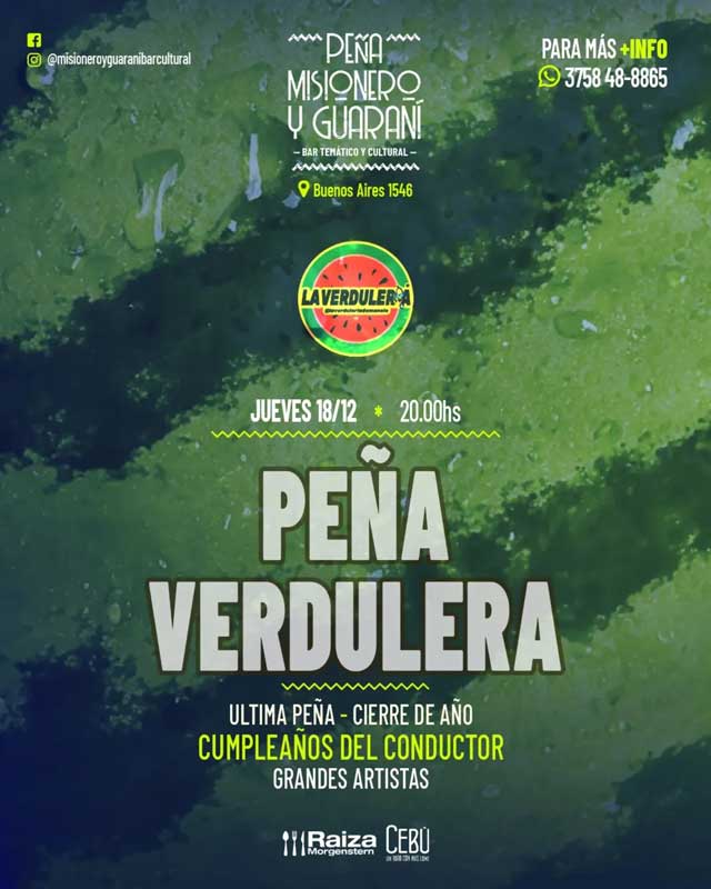 Se viene la última Peña Verdulera para celebrar, compartir y despedir el 2025 como se merece. Música en vivo, grandes artistas, cumpleaños del conductor, bar temático y cultural