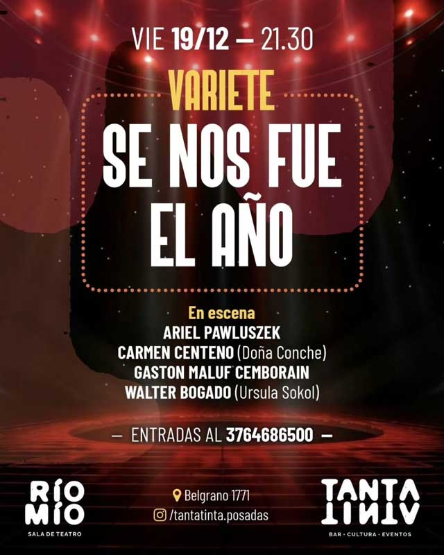 El varieté de humor y transformismo Se nos fue el año… es una producción colectiva donde se juntan Ariel, Carmen, Gastón y Walter con el único objetivo de hacerte reír. Humor, transformismo; Stand Up y un toque de actualidad será la clave de la presentación.
