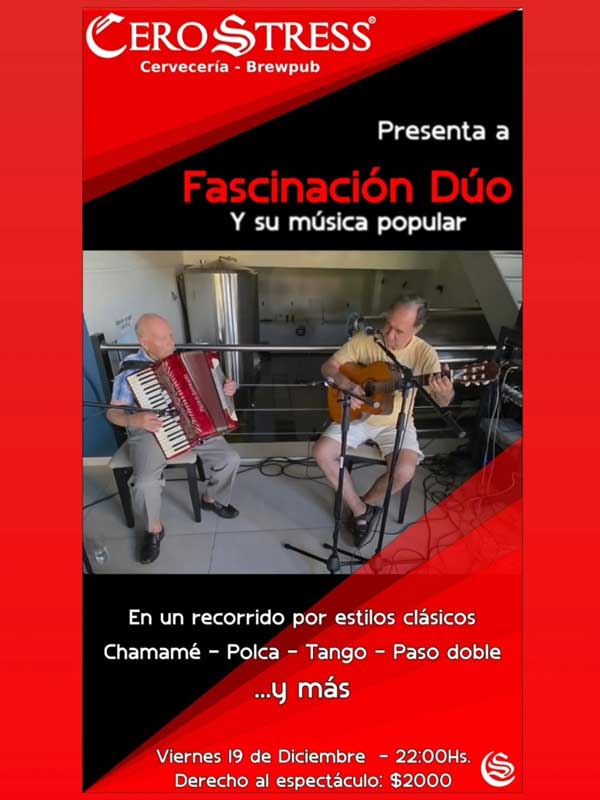 Show en vivo de Fascinación Duo y la música popular. Lucho Aches y Luis Henn transportan a un recorrido musical por estilos clásicos como chamamé, polca, tango y mucho más.