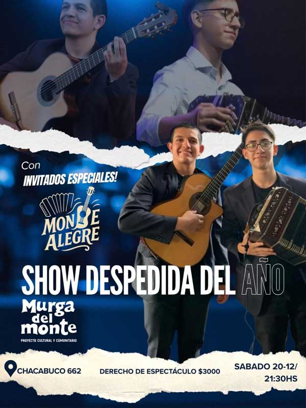 El Duo Monje Alegre realiza un show despedida de año en Oberá. Una oportunidad para vivir un viaje sonoro por la música del litoral. Tendrán invitados especiales que aportarán energía y sensibilidad en un encuentro único.