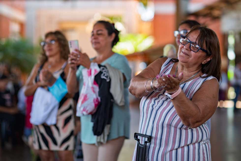 “Por la historia que tiene la orquesta, su presencia viene a prestigiar nuestro escenario”, destacó Mariela Bernardi, administradora del MCZ. “Y además estamos contentos porque volvemos con los sábados culturales, con la idea de que los clientes vengan, hagan la compra y de paso escuchen alguna canción misionera”. La Orquesta estuvo acompañada por Ernesto Lozina, subsecretario de Relaciones Públicas de la Secretaría de Estado de Cultura. “Queremos sumarnos a este espacio con distintas propuestas culturales y eso se va a ir desarrollando los próximos sábados”, adelantó el funcionario.