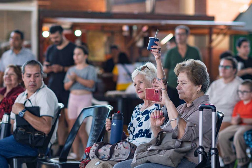 Sentados en las sillas o haciendo palmas, los clientes habituales del Mercado hicieron una pausa en sus compras del sábado. Incluso, hubo quienes vinieron especialmente a “ver qué onda”. “Vivimos cerca y siempre nos damos una vuelta por acá, para que los chicos paseen”, contó María Cristina Gonzalez, mientras su hija y sus nietos recorrían el predio. “Y hoy fue grata la sorpresa”.