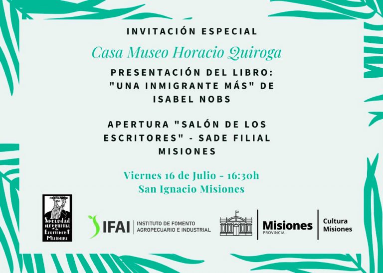 Con la presentación del libro “Una inmigrante más” de Isabel Nobs, este viernes a las 16.30 se inaugurará en la casa museo de Horacio Quiroga de San Ignacio…