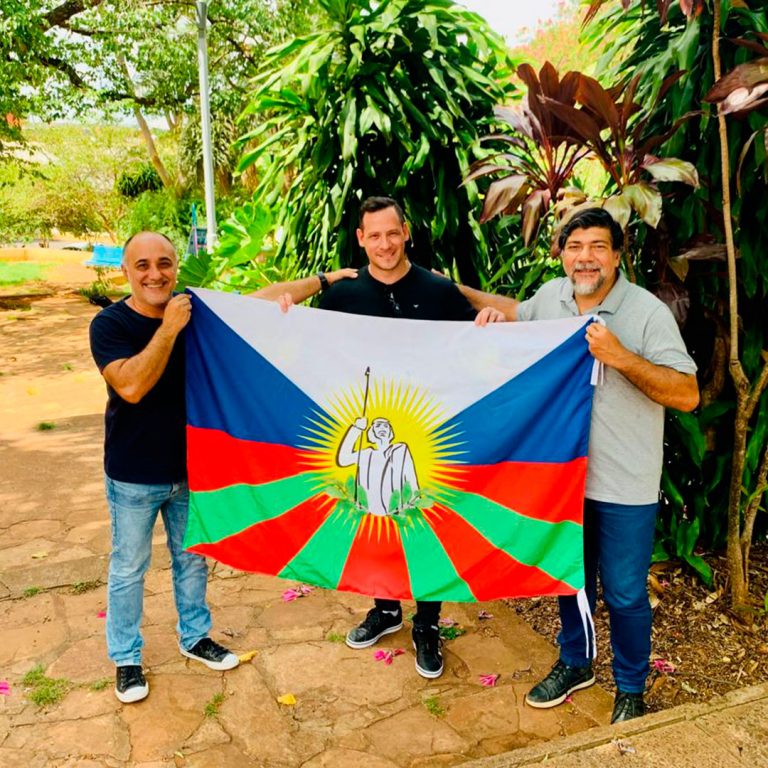 El ministro de Cultura de la Provincia, Joselo Schuap, junto al coordinador del programa provincial “Revalorización de la Identidad Misionera, Símbolos y Canciones Oficiales”, Adrián Damiani, hicieron entrega…